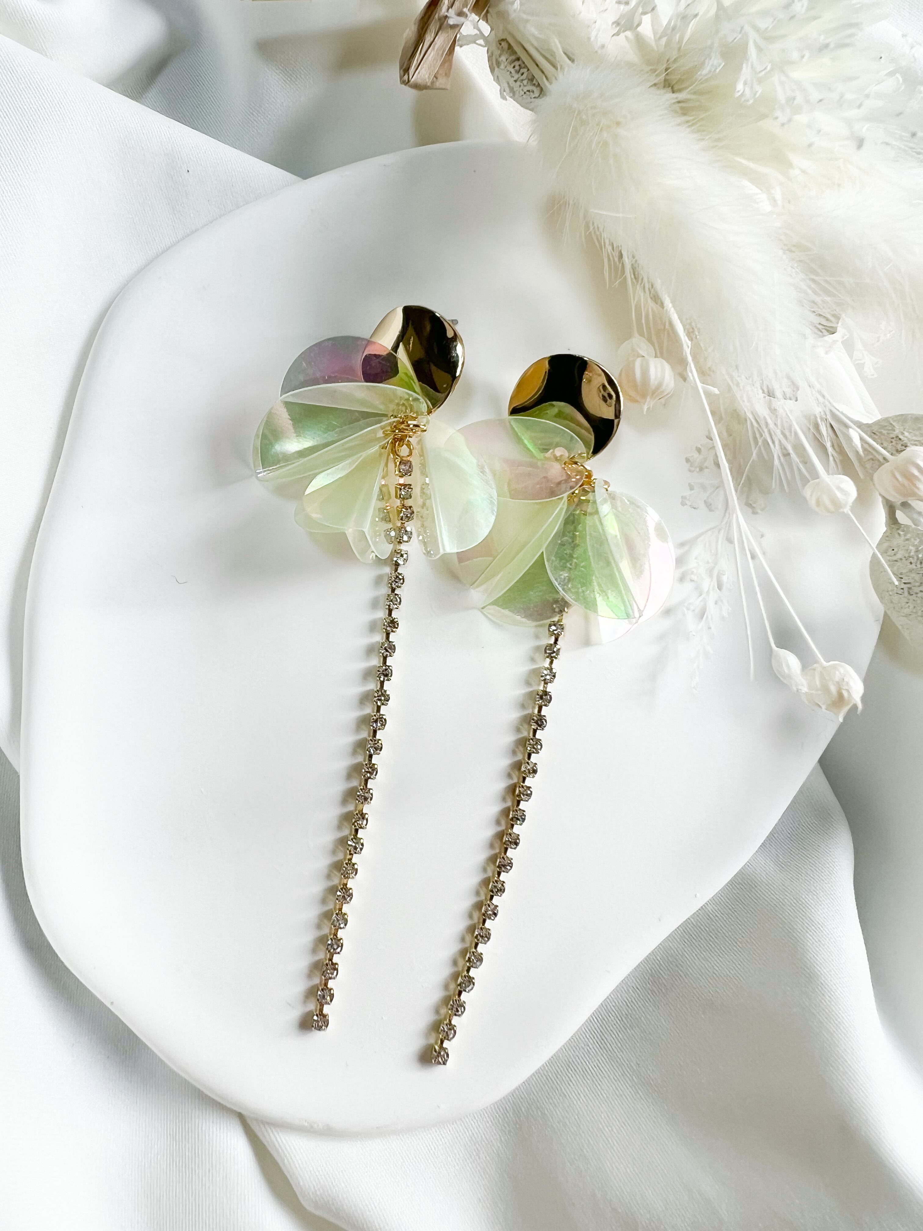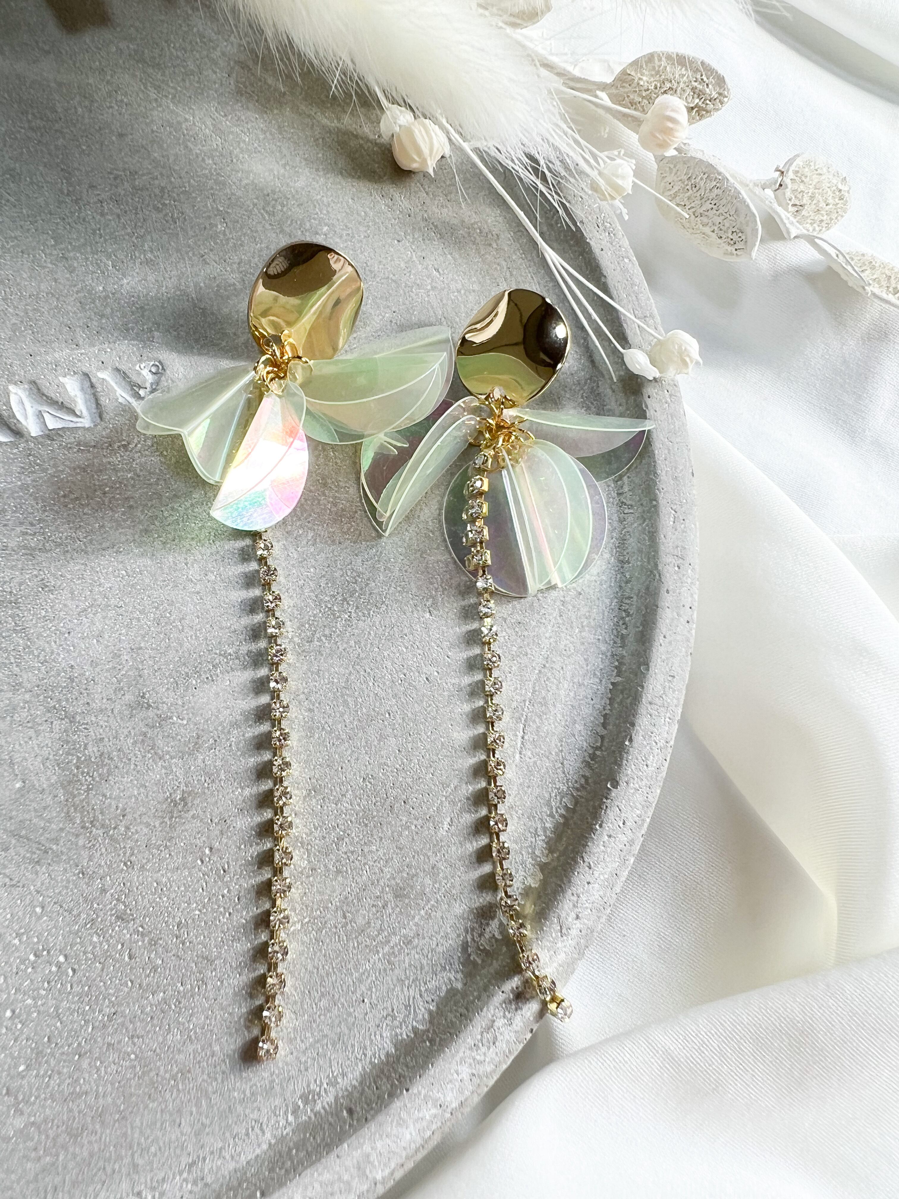 オーロラカラーのフリンジがとても可愛いらしいピアス♪