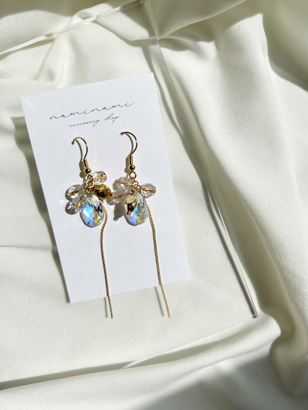 また、ビジューには高品質なクリスタルを使用しています。キラキラと輝くデザインは、